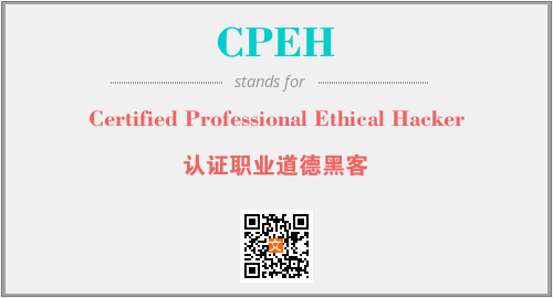 英文缩略词“CPEH”经常作为“Certified Professional Ethical Hacker”的英文缩写来使用,中文表示:“认证职业道德黑客”。本文将详细介绍英文缩写词CPEH所代表英文单词,其对应的中文拼音、详细解释以及在英语中的流行度。此外,还有关于缩略词CPEH的分类、应用领域及相关应用示例等。