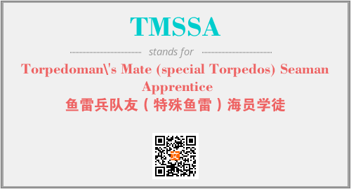 英文缩略词“TMSSA”经常作为“Torpedoman\'s Mate (special Torpedos) Seaman Apprentice”的英文缩写来使用,中文表示:“鱼雷兵队友(特殊鱼雷)海员学徒”。本文将详细介绍英文缩写词TMSSA所代表英文单词,其对应的中文拼音、详细解释以及在英语中的流行度。此外,还有关于缩略词TMSSA的分类、应用领域及相关应用示例等。