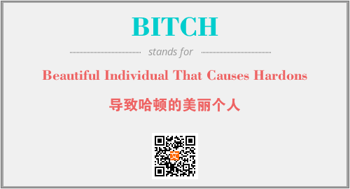 英文缩略词“BITCH”经常作为“Beautiful Individual That Causes Hardons”的英文缩写来使用,中文表示:“导致哈顿的美丽个人”。本文将详细介绍英文缩写词BITCH所代表英文单词,其对应的中文拼音、详细解释以及在英语中的流行度。此外,还有关于缩略词BITCH的分类、应用领域及相关应用示例等。