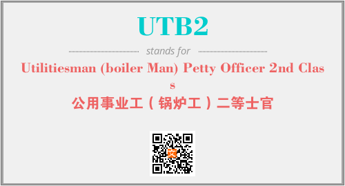 上述内容是“Utilitiesman (boiler Man) Petty Officer 2nd Class”作为“UTB2”的缩写,解释为“公用事业工(锅炉工)二等士官”时的信息,以及英文缩略词UTB2所代表的英文单词,其对应的中文拼音、详细解释以及在英文中的流行度和相关分类、应用领域及应用示例等。