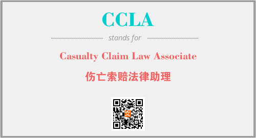 上述内容是“Casualty Claim Law Associate”作为“CCLA”的缩写,解释为“伤亡索赔法律助理”时的信息,以及英文缩略词CCLA所代表的英文单词,其对应的中文拼音、详细解释以及在英文中的流行度和相关分类、应用领域及应用示例等。