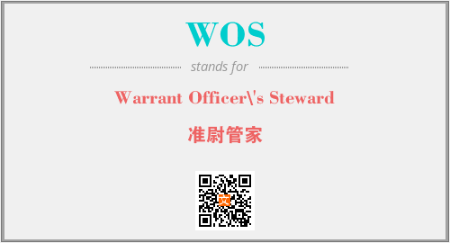 英文缩略词“WOS”经常作为“Warrant Officer\'s Steward”的英文缩写来使用,中文表示:“准尉管家”。本文将详细介绍英文缩写词WOS所代表英文单词,其对应的中文拼音、详细解释以及在英语中的流行度。此外,还有关于缩略词WOS的分类、应用领域及相关应用示例等。