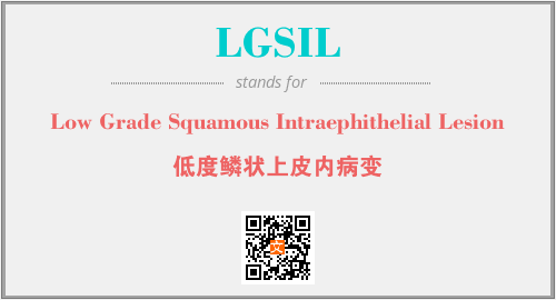 上述内容是“Low Grade Squamous Intraephithelial Lesion”作为“LGSIL”的缩写,解释为“低度鳞状上皮内病变”时的信息,以及英文缩略词LGSIL所代表的英文单词,其对应的中文拼音、详细解释以及在英文中的流行度和相关分类、应用领域及应用示例等。