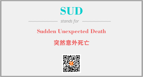 英文缩略词“SUD”经常作为“Sudden Unexpected Death”的英文缩写来使用,中文表示:“突然意外死亡”。本文将详细介绍英文缩写词SUD所代表英文单词,其对应的中文拼音、详细解释以及在英语中的流行度。此外,还有关于缩略词SUD的分类、应用领域及相关应用示例等。