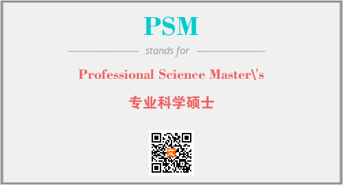 英文缩略词“PSM”经常作为“Professional Science Master\'s”的英文缩写来使用,中文表示:“专业科学硕士”。本文将详细介绍英文缩写词PSM所代表英文单词,其对应的中文拼音、详细解释以及在英语中的流行度。此外,还有关于缩略词PSM的分类、应用领域及相关应用示例等。