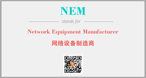 英文缩略词“NEM”经常作为“Network Equipment Manufacturer”的英文缩写来使用,中文表示:“网络设备制造商”。本文将详细介绍英文缩写词NEM所代表英文单词,其对应的中文拼音、详细解释以及在英语中的流行度。此外,还有关于缩略词NEM的分类、应用领域及相关应用示例等。