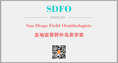 上述内容是“San Diego Field Ornithologists”作为“SDFO”的缩写,解释为“圣地亚哥野外鸟类学家”时的信息,以及英文缩略词SDFO所代表的英文单词,其对应的中文拼音、详细解释以及在英文中的流行度和相关分类、应用领域及应用示例等。