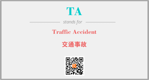上述内容是“Traffic Accident”作为“TA”的缩写,解释为“交通事故”时的信息,以及英文缩略词TA所代表的英文单词,其对应的中文拼音、详细解释以及在英文中的流行度和相关分类、应用领域及应用示例等。