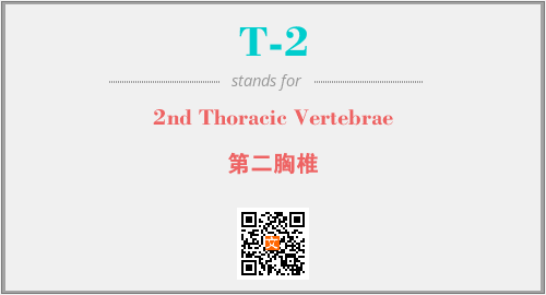 英文缩略词“T-2”经常作为“2nd Thoracic Vertebrae”的英文缩写来使用,中文表示:“第二胸椎”。本文将详细介绍英文缩写词T-2所代表英文单词,其对应的中文拼音、详细解释以及在英语中的流行度。此外,还有关于缩略词T-2的分类、应用领域及相关应用示例等。