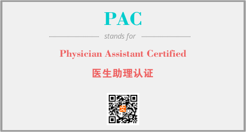 英文缩略词“PAC”经常作为“Physician Assistant Certified”的英文缩写来使用,中文表示:“医生助理认证”。本文将详细介绍英文缩写词PAC所代表英文单词,其对应的中文拼音、详细解释以及在英语中的流行度。此外,还有关于缩略词PAC的分类、应用领域及相关应用示例等。
