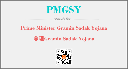 以上为Prime Minister Gramin Sadak Yojana英文缩略词PMGSY的中文解释,以及该英文缩写在英语的流行度、分类和应用领域方面的信息。