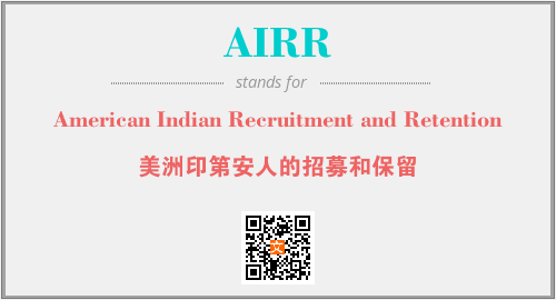 上述内容是“American Indian Recruitment and Retention”作为“AIRR”的缩写,解释为“美洲印第安人的招募和保留”时的信息,以及英文缩略词AIRR所代表的英文单词,其对应的中文拼音、详细解释以及在英文中的流行度和相关分类、应用领域及应用示例等。