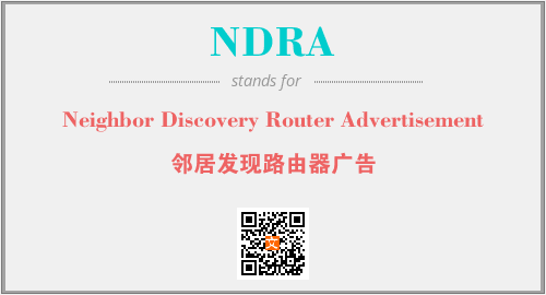 上述内容是“Neighbor Discovery Router Advertisement”作为“NDRA”的缩写,解释为“邻居发现路由器广告”时的信息,以及英文缩略词NDRA所代表的英文单词,其对应的中文拼音、详细解释以及在英文中的流行度和相关分类、应用领域及应用示例等。
