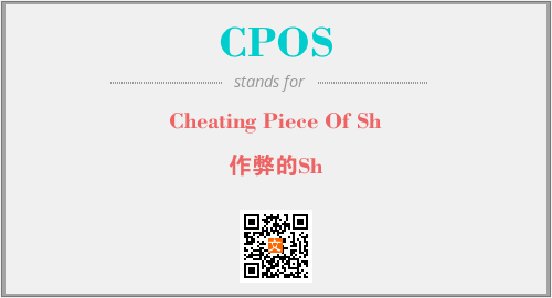 英文缩略词“CPOS”经常作为“Cheating Piece Of Sh”的英文缩写来使用,中文表示:“作弊的Sh”。本文将详细介绍英文缩写词CPOS所代表英文单词,其对应的中文拼音、详细解释以及在英语中的流行度。此外,还有关于缩略词CPOS的分类、应用领域及相关应用示例等。