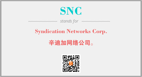上述内容是“Syndication Networks Corp.”作为“SNC”的缩写,解释为“辛迪加网络公司。”时的信息,以及英文缩略词SNC所代表的英文单词,其对应的中文拼音、详细解释以及在英文中的流行度和相关分类、应用领域及应用示例等。