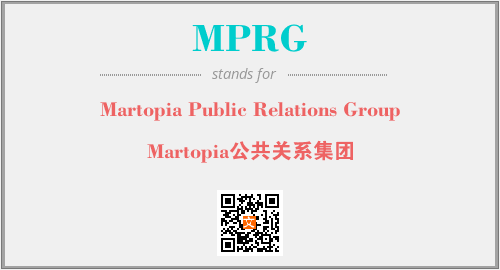 上述内容是“Martopia Public Relations Group”作为“MPRG”的缩写,解释为“Martopia公共关系集团”时的信息,以及英文缩略词MPRG所代表的英文单词,其对应的中文拼音、详细解释以及在英文中的流行度和相关分类、应用领域及应用示例等。