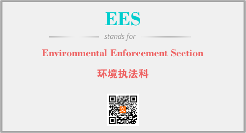英文缩略词“EES”经常作为“Environmental Enforcement Section”的英文缩写来使用,中文表示:“环境执法科”。本文将详细介绍英文缩写词EES所代表英文单词,其对应的中文拼音、详细解释以及在英语中的流行度。此外,还有关于缩略词EES的分类、应用领域及相关应用示例等。