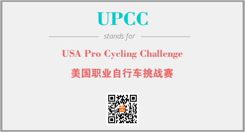 英文缩略词“UPCC”经常作为“USA Pro Cycling Challenge”的英文缩写来使用,中文表示:“美国职业自行车挑战赛”。本文将详细介绍英文缩写词UPCC所代表英文单词,其对应的中文拼音、详细解释以及在英语中的流行度。此外,还有关于缩略词UPCC的分类、应用领域及相关应用示例等。