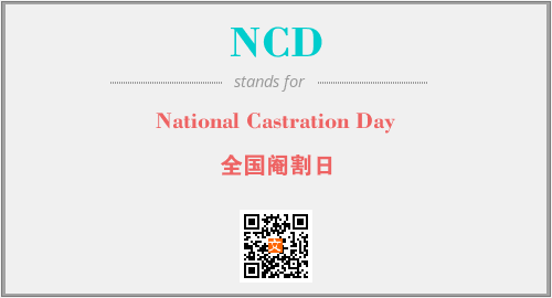 英文缩略词“NCD”经常作为“National Castration Day”的英文缩写来使用,中文表示:“全国阉割日”。本文将详细介绍英文缩写词NCD所代表英文单词,其对应的中文拼音、详细解释以及在英语中的流行度。此外,还有关于缩略词NCD的分类、应用领域及相关应用示例等。