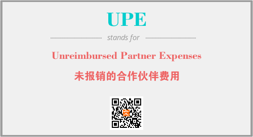 以上为Unreimbursed Partner Expenses英文缩略词UPE的中文解释,以及该英文缩写在英语的流行度、分类和应用领域方面的信息。