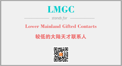 以上为Lower Mainland Gifted Contacts英文缩略词LMGC的中文解释,以及该英文缩写在英语的流行度、分类和应用领域方面的信息。