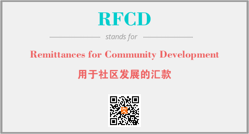 上述内容是“Remittances for Community Development”作为“RFCD”的缩写,解释为“用于社区发展的汇款”时的信息,以及英文缩略词RFCD所代表的英文单词,其对应的中文拼音、详细解释以及在英文中的流行度和相关分类、应用领域及应用示例等。