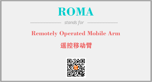 上述内容是“Remotely Operated Mobile Arm”作为“ROMA”的缩写,解释为“遥控移动臂”时的信息,以及英文缩略词ROMA所代表的英文单词,其对应的中文拼音、详细解释以及在英文中的流行度和相关分类、应用领域及应用示例等。