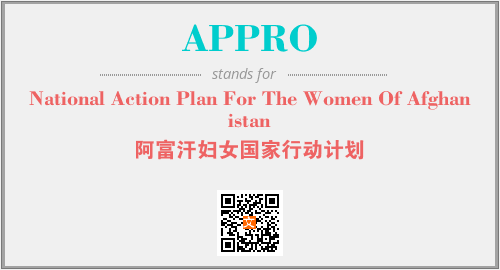 上述内容是“National Action Plan For The Women Of Afghanistan”作为“APPRO”的缩写,解释为“阿富汗妇女国家行动计划”时的信息,以及英文缩略词APPRO所代表的英文单词,其对应的中文拼音、详细解释以及在英文中的流行度和相关分类、应用领域及应用示例等。