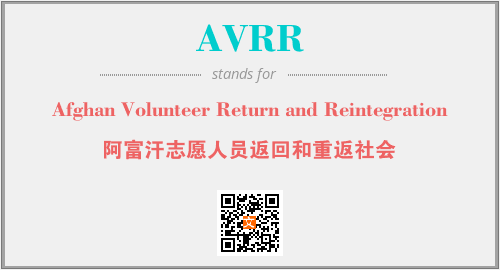 上述内容是“Afghan Volunteer Return and Reintegration”作为“AVRR”的缩写,解释为“阿富汗志愿人员返回和重返社会”时的信息,以及英文缩略词AVRR所代表的英文单词,其对应的中文拼音、详细解释以及在英文中的流行度和相关分类、应用领域及应用示例等。