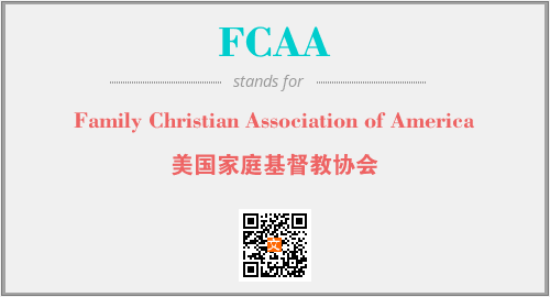 上述内容是“Family Christian Association of America”作为“FCAA”的缩写,解释为“美国家庭基督教协会”时的信息,以及英文缩略词FCAA所代表的英文单词,其对应的中文拼音、详细解释以及在英文中的流行度和相关分类、应用领域及应用示例等。