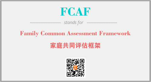 英文缩略词“FCAF”经常作为“Family Common Assessment Framework”的英文缩写来使用,中文表示:“家庭共同评估框架”。本文将详细介绍英文缩写词FCAF所代表英文单词,其对应的中文拼音、详细解释以及在英语中的流行度。此外,还有关于缩略词FCAF的分类、应用领域及相关应用示例等。