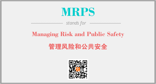 上述内容是“Managing Risk and Public Safety”作为“MRPS”的缩写,解释为“管理风险和公共安全”时的信息,以及英文缩略词MRPS所代表的英文单词,其对应的中文拼音、详细解释以及在英文中的流行度和相关分类、应用领域及应用示例等。