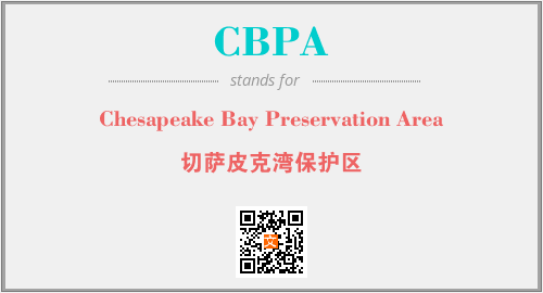 上述内容是“Chesapeake Bay Preservation Area”作为“CBPA”的缩写,解释为“切萨皮克湾保护区”时的信息,以及英文缩略词CBPA所代表的英文单词,其对应的中文拼音、详细解释以及在英文中的流行度和相关分类、应用领域及应用示例等。