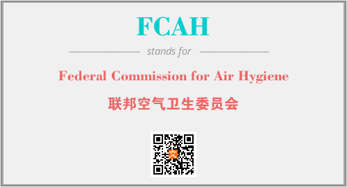 上述内容是“Federal Commission for Air Hygiene”作为“FCAH”的缩写,解释为“联邦空气卫生委员会”时的信息,以及英文缩略词FCAH所代表的英文单词,其对应的中文拼音、详细解释以及在英文中的流行度和相关分类、应用领域及应用示例等。