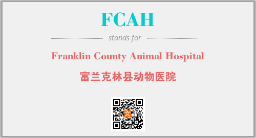 上述内容是“Franklin County Animal Hospital”作为“FCAH”的缩写,解释为“富兰克林县动物医院”时的信息,以及英文缩略词FCAH所代表的英文单词,其对应的中文拼音、详细解释以及在英文中的流行度和相关分类、应用领域及应用示例等。