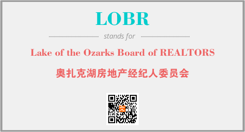 上述内容是“Lake of the Ozarks Board of REALTORS”作为“LOBR”的缩写,解释为“奥扎克湖房地产经纪人委员会”时的信息,以及英文缩略词LOBR所代表的英文单词,其对应的中文拼音、详细解释以及在英文中的流行度和相关分类、应用领域及应用示例等。