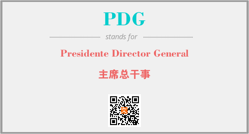 上述内容是“Presidente Director General”作为“PDG”的缩写,解释为“主席总干事”时的信息,以及英文缩略词PDG所代表的英文单词,其对应的中文拼音、详细解释以及在英文中的流行度和相关分类、应用领域及应用示例等。