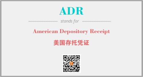 上述内容是“American Depository Receipt”作为“ADR”的缩写,解释为“美国存托凭证”时的信息,以及英文缩略词ADR所代表的英文单词,其对应的中文拼音、详细解释以及在英文中的流行度和相关分类、应用领域及应用示例等。