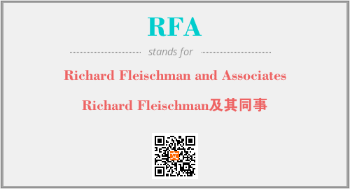 上述内容是“Richard Fleischman and Associates”作为“RFA”的缩写,解释为“Richard Fleischman及其同事”时的信息,以及英文缩略词RFA所代表的英文单词,其对应的中文拼音、详细解释以及在英文中的流行度和相关分类、应用领域及应用示例等。