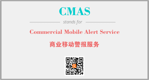 英文缩略词“CMAS”经常作为“Commercial Mobile Alert Service”的英文缩写来使用,中文表示:“商业移动警报服务”。本文将详细介绍英文缩写词CMAS所代表英文单词,其对应的中文拼音、详细解释以及在英语中的流行度。此外,还有关于缩略词CMAS的分类、应用领域及相关应用示例等。