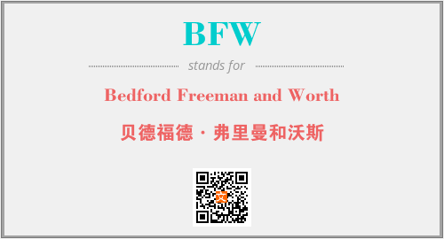 上述内容是“Bedford Freeman and Worth”作为“BFW”的缩写,解释为“贝德福德·弗里曼和沃斯”时的信息,以及英文缩略词BFW所代表的英文单词,其对应的中文拼音、详细解释以及在英文中的流行度和相关分类、应用领域及应用示例等。