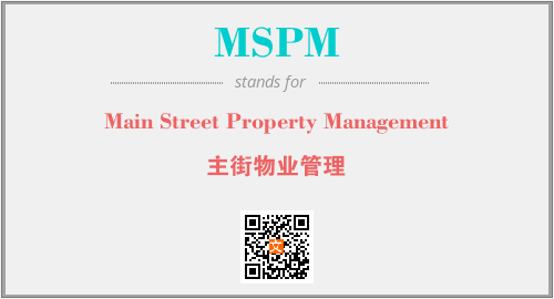 英文缩略词“MSPM”经常作为“Main Street Property Management”的英文缩写来使用,中文表示:“主街物业管理”。本文将详细介绍英文缩写词MSPM所代表英文单词,其对应的中文拼音、详细解释以及在英语中的流行度。此外,还有关于缩略词MSPM的分类、应用领域及相关应用示例等。