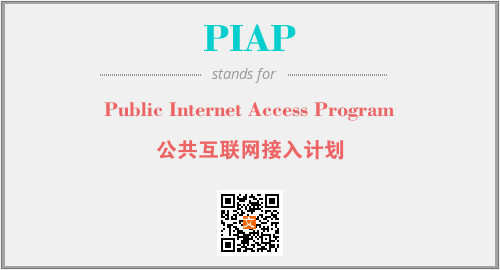 英文缩略词“PIAP”经常作为“Public Internet Access Program”的英文缩写来使用,中文表示:“公共互联网接入计划”。本文将详细介绍英文缩写词PIAP所代表英文单词,其对应的中文拼音、详细解释以及在英语中的流行度。此外,还有关于缩略词PIAP的分类、应用领域及相关应用示例等。