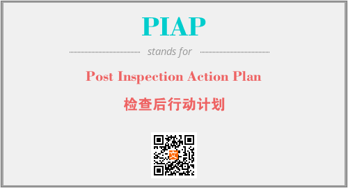英文缩略词“PIAP”经常作为“Post Inspection Action Plan”的英文缩写来使用,中文表示:“检查后行动计划”。本文将详细介绍英文缩写词PIAP所代表英文单词,其对应的中文拼音、详细解释以及在英语中的流行度。此外,还有关于缩略词PIAP的分类、应用领域及相关应用示例等。