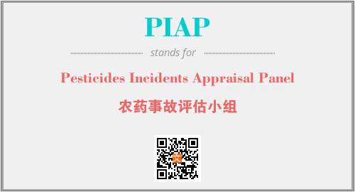 上述内容是“Pesticides Incidents Appraisal Panel”作为“PIAP”的缩写,解释为“农药事故评估小组”时的信息,以及英文缩略词PIAP所代表的英文单词,其对应的中文拼音、详细解释以及在英文中的流行度和相关分类、应用领域及应用示例等。