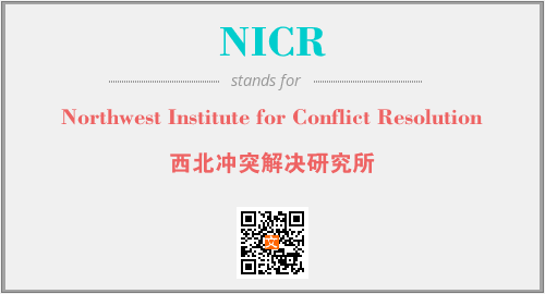 上述内容是“Northwest Institute for Conflict Resolution”作为“NICR”的缩写,解释为“西北冲突解决研究所”时的信息,以及英文缩略词NICR所代表的英文单词,其对应的中文拼音、详细解释以及在英文中的流行度和相关分类、应用领域及应用示例等。