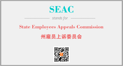 英文缩略词“SEAC”经常作为“State Employees Appeals Commission”的英文缩写来使用,中文表示:“州雇员上诉委员会”。本文将详细介绍英文缩写词SEAC所代表英文单词,其对应的中文拼音、详细解释以及在英语中的流行度。此外,还有关于缩略词SEAC的分类、应用领域及相关应用示例等。