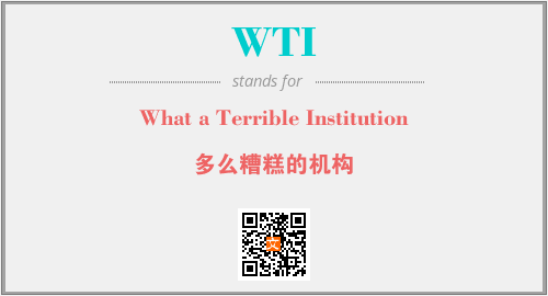 上述内容是“What a Terrible Institution”作为“WTI”的缩写,解释为“多么糟糕的机构”时的信息,以及英文缩略词WTI所代表的英文单词,其对应的中文拼音、详细解释以及在英文中的流行度和相关分类、应用领域及应用示例等。