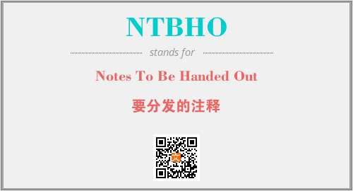以上为Notes To Be Handed Out英文缩略词NTBHO的中文解释,以及该英文缩写在英语的流行度、分类和应用领域方面的信息。