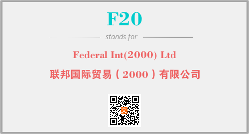 英文缩略词“F20”经常作为“Federal Int(2000) Ltd”的英文缩写来使用,中文表示:“联邦国际贸易(2000)有限公司”。本文将详细介绍英文缩写词F20所代表英文单词,其对应的中文拼音、详细解释以及在英语中的流行度。此外,还有关于缩略词F20的分类、应用领域及相关应用示例等。